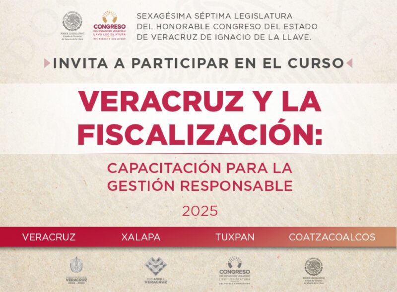 Xalapa, Ver., 21 de marzo de 2025.- Este 24 de marzo, el Palacio Legislativo será sede del curso Veracruz y la Fiscalización: Capacitación para una Gestión Responsable 2025, dirigido a las y los servidores públicos municipales de la entidad y organizado por este Congreso, a través de la Secretaría de Fiscalización y la Dirección de Auditoría y Revisión Financiera, y la Contraloría General del Estado (CGE).