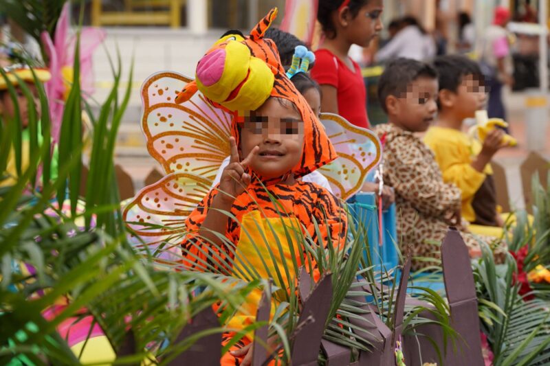 Las calles Eulalio Vela, Correos y Miguel Hidalgo del barrio primero se llenaron de música, risas y aplausos, mientras los pequeñines desfilaban con entusiasmo, presentando diversas coreografías,