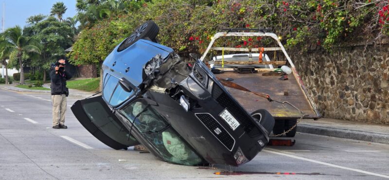 Los primeros reportes indican que la conductora de un vehículo Seat tipo Toledo color negro perdió el control de la unidad en la curva que se encuentra cerca del espacio conocido como \”Penacho del Indio\”, y terminó impactando contra el muro divisorio y un poste de alumbrado público que ocasionó la volcadura de la unidad.
