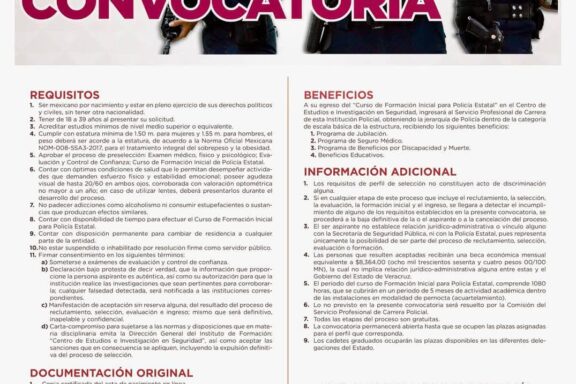 Convocatoria abierta para la Policía Estatal de Veracruz: Seguridad y estabilidad laboral.