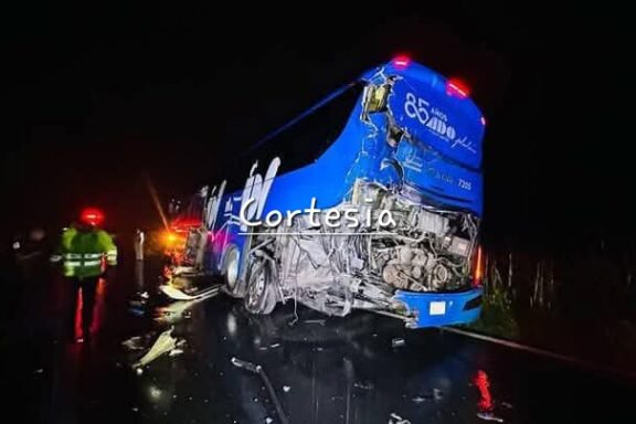 Tractocamión impacta a autobús de la linea ADO; 2 pasajeros resultaron lesionados.