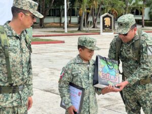 Durante esta emotiva jornada, Emiliano, “el soldado Chávez”, tuvo la oportunidad de convivir con elementos de la 29/a Zona Militar, conocer de cerca las actividades que realiza el Ejército Mexicano y sentirse parte de una gran familia que honra valores como la disciplina, el honor y el servicio a la patria.