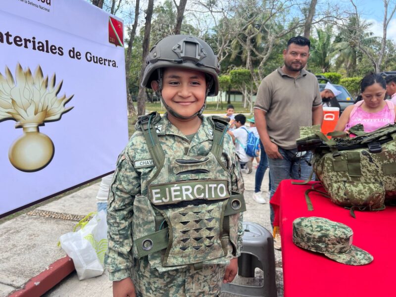 Durante esta emotiva jornada, Emiliano, “el soldado Chávez”, tuvo la oportunidad de convivir con elementos de la 29/a Zona Militar, conocer de cerca las actividades que realiza el Ejército Mexicano y sentirse parte de una gran familia que honra valores como la disciplina, el honor y el servicio a la patria.