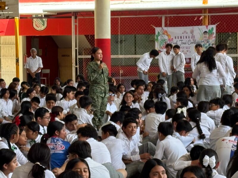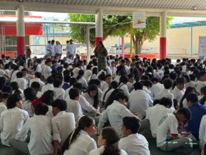 Personal del Servicio de Sanidad del 45 Batallón de Infantería llevaron a cabo una conferencia abordando el tema “Prevencion de Adiciones”, a los alumnos de la Escuela Secundaria Técnica General del municipio de Acayucan, Ver.