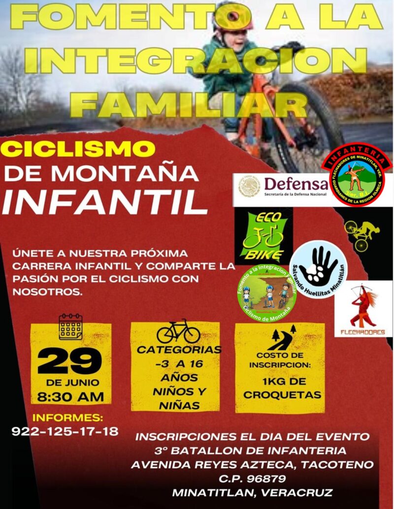 La comandancia del 3/er. Batallón de Infantería, se complace en invitar a tus hijos a participar en nuestro evento de CICLISMO DE MONTAÑA INFANTIL, será una experiencia divertida y emocionante para toda la familia.