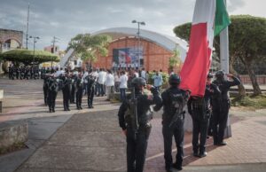 Acompañado por ediles del H, Ayuntamiento de Cosoleacaque, se rindieron los honores correspondientes al lábaro patrio. Al concluir el acto Cívico, el cuerpo edilicio, policías municipales y personal de las diferentes áreas del palacio municipal llevaron a cabo guardias de honor.