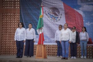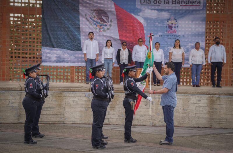 COSOLEACAQUE, VER. A 24 de febrero de 2026.- El presidente municipal, Cirilo Vázquez Parissi, encabezó el acto cívico para conmemorar hoy 24 de febrero, el Dia de la Bandera de México, símbolo nacional de unidad, historia e identidad, en donde se realizó el izamiento y guardias de honor en la explanada del parque central “Miguel Hidalgo”.