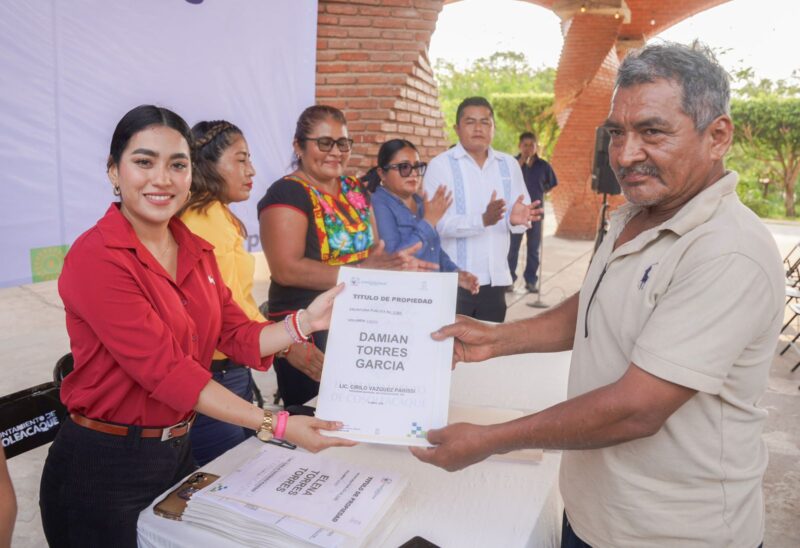COSOLEACAQUE, VER. A 17 de abril de 2026.- El H. Ayuntamiento de Cosoleacaque, encabezado por el alcalde, Cirilo Vázquez Parissi, realizó la entrega de escrituras gratuitas de fundo legal a 65 familias de distintos sectores del municipio.