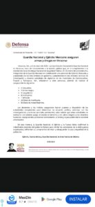 De esta manera, la Guardia Nacional, el Ejército y la Fuerza Aérea reafirman la indeclinable decisión del gobierno federal para inhibir las actividades de la delincuencia organizada y refrendan su compromiso de velar y salvaguardar la paz y seguridad de la población.