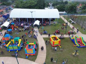 El domo del nuevo parque recreativo fue el recinto para llevar alegría y mucha diversión para chicos y grandes, con el gran espectáculo de los payasos Toribio y Pepin, quienes pusieron a concursar y a participar atodo el público de las diferentes colonias como Cerro Alto, Martin Lancero, Sección 32, el Naranjo, Los Arcos, Fovisste, F. Gutiérrez, por mencionar algunas.