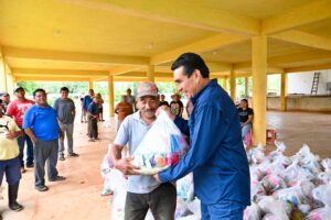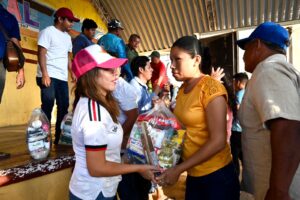 •En representación de la gobernadora Rocío Nahle García, la diputada Naomi Edith Gómez y el diputado Esteban Bautista encabezan la distribución de dos mil despensas en Pajapan, Tatahuicapan y Mecayapan.