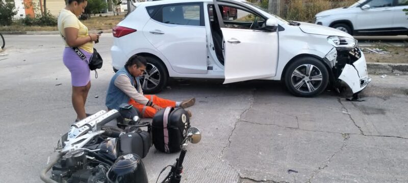 Motociclista fue atropellado por conductora de automóvil, en Coatzacoalcos.