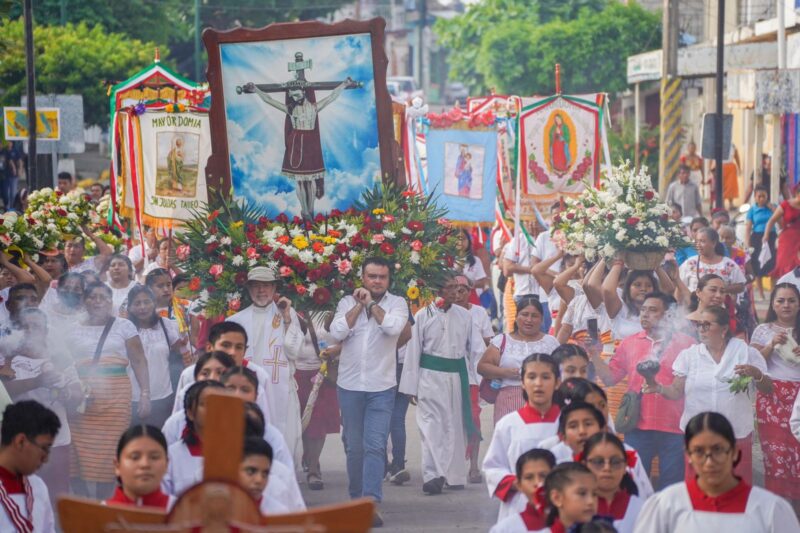 Participa alcalde de Cosoleacaque en el paseo de flores de la Preciosa Sangre de Cristo.