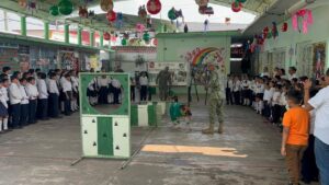 MINATITLÁN, VER. A 09 de diciembre de 2025.- Con el objeto de seguir generando vínculos de Acercamiento Social con la población, el Ejército Mexicano llevó a cabo una Demostración Canofila en plantel educativo.