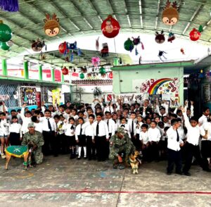 Esto, con la finalidad de que los alumnos conozcan parte de las actividades que realizan los Canofilos y manejadores caninos dentro del Ejército Mexicano para beneficio de la ciudadanía, asimismo, seguir generando vínculos de acercamiento social con la población.