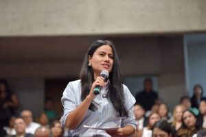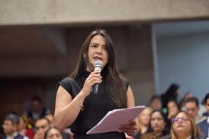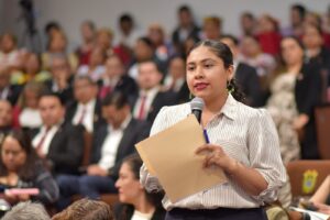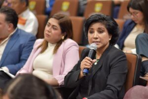 Claudia Tello habló de las acciones de modernización y reorganización como la estrategia Maestro al Aula, el Programa de Organización y Reorientación Técnico Pedagógica con Énfasis en Inclusión (POR TI), Reducción de Carga Administrativa Docente, Mejora Educativa, la plataforma Mi Alumno, la ampliación de la cobertura de becas para la permanencia y conclusión de estudios, la Resignificación de la Función Supervisora y diversas acciones para la revalorización docente.