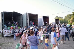 Al visitar la localidad de Estero del Ídolo y las colonias Heroica Veracruz, Barrio de las Flores, Jardín Viejo, así como las comunidades San Miguel, Raya Oscura, Zacatal y Santa Rosalía, y con la participación de la presidenta de la Mesa Directiva, diputada Naomi Edith Gómez Santos, y del coordinador del Grupo Legislativo del Partido Verde Ecologista de México (PVEM), diputado Carlos Marcelo Ruiz Sánchez, el legislador Bautista Hernández informó de la adquisición y entrega de 10 mil despensas, siete mil kits de limpieza y mil tinacos a las personas damnificadas, resultado del Acuerdo de las y los integrantes del Congreso local de donar un mes de salario.