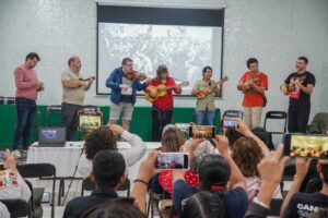 Dando paso a la charla “La música tradicional del mediterráneo hispánico. Paralelismo con el son jarocho y el son huasteco”, en la que participaron los miembros de Espai de so y Sael Bernal Zamudio de Pájaros del Alba. Miquel Flores y Rondalla dels Ports impartieron el taller de baile tradicional catalán, valenciano y aragonés, con música en vivo, cerrando las actividades con un gran fandango y la degustación de la gastronomía local, el tradicional popo y ricos tamales.