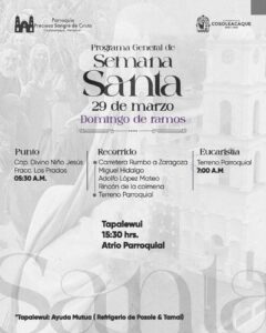Cosoleacaque se viste de fervor y tradición para recibir a habitantes y visitantes; el programa general contempla diversas actividades que darán inicio el próximo 29 de marzo, con el Domingo de Ramos, ya que se llevará a cabo una procesión desde la capilla el Divino Niño Jesús, del fraccionamiento Los Prados, hasta el terreno parroquial.